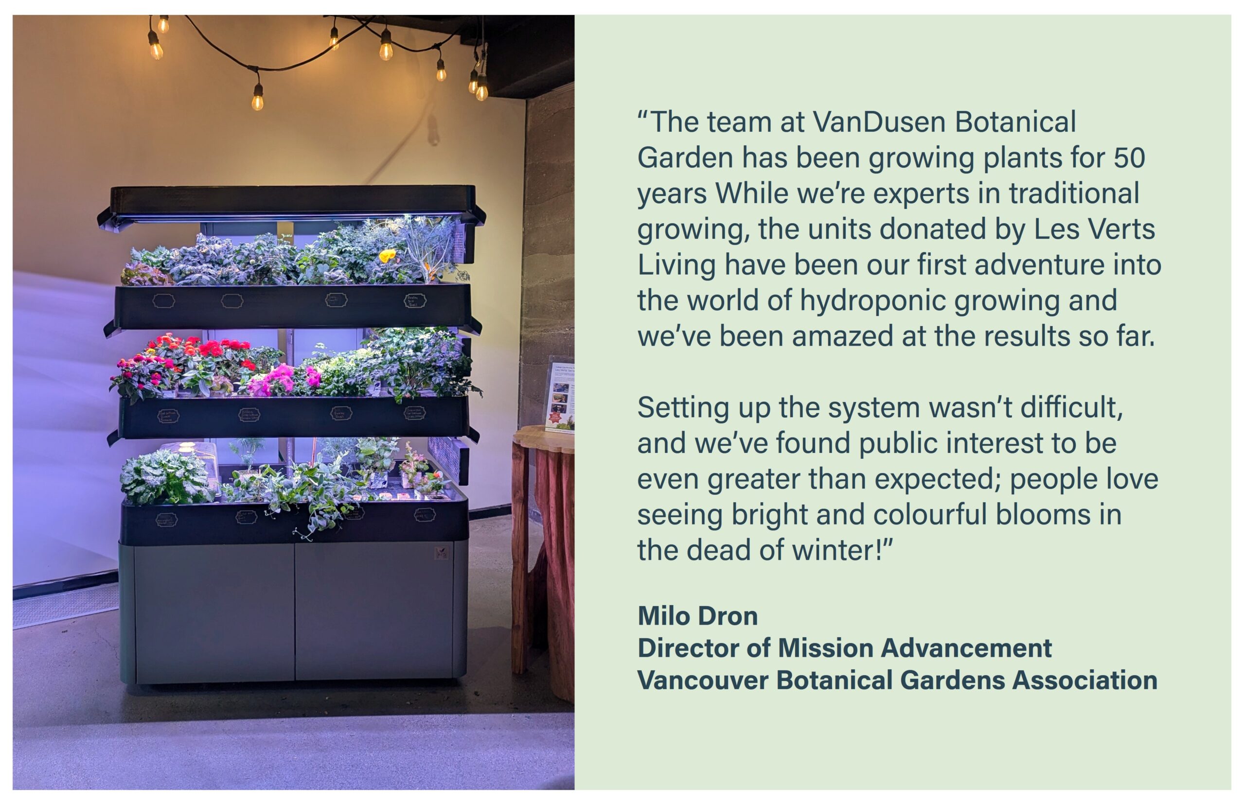 Hear from Milo Dron, Director of Mission Advancement for the Vancouver Botanical Gardens Association, on VanDusen’s experience with the Les Verts Terrace in this article here.